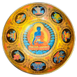 Astamangala ist eine bestimmte Gruppe von acht Glückssymbolen aus dem Buddhismus. Zur Heilung befindet sich der Medizin Buddha in der Mitte der Klangschale mit den Glückssymbolen.