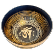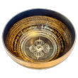 Diese Therapieschale hat eine glatte und reich verzierte Oberfläche mit einem feinen, breiten Rand. Sie überzeugt durch ihre schmuckvolle Verzierung mit Mantras und Symbolen auf der Innen- und Aussenseite. Der Boden der Schale ist mit dem Symbol des Donnerkeils verziert.