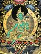 Dieses Thangka stellt die grüne Tara dar. Tara ist eine weibliche, friedvolle Manifestation erleuchteter Weisheit und die Essenz des Mitgefühls. Es heißt, sie sei aus einer Träne des Bodhisattva Avalokitesvara (Gottheit der Barmherzigkeit) entstanden.