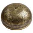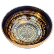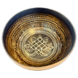 Diese Therapieschale hat eine glatte und reich verzierte Oberfläche mit einem feinen, breiten Rand. Sie überzeugt durch ihre schmuckvolle Verzierung mit Mantras und Symbolen auf der Innen- und Aussenseite. Der Boden der Schale ist mit dem Symbol des Endlosknoten verziert. Jede Klangschale ist ein Einzelstück, individuell in Klang und Größe